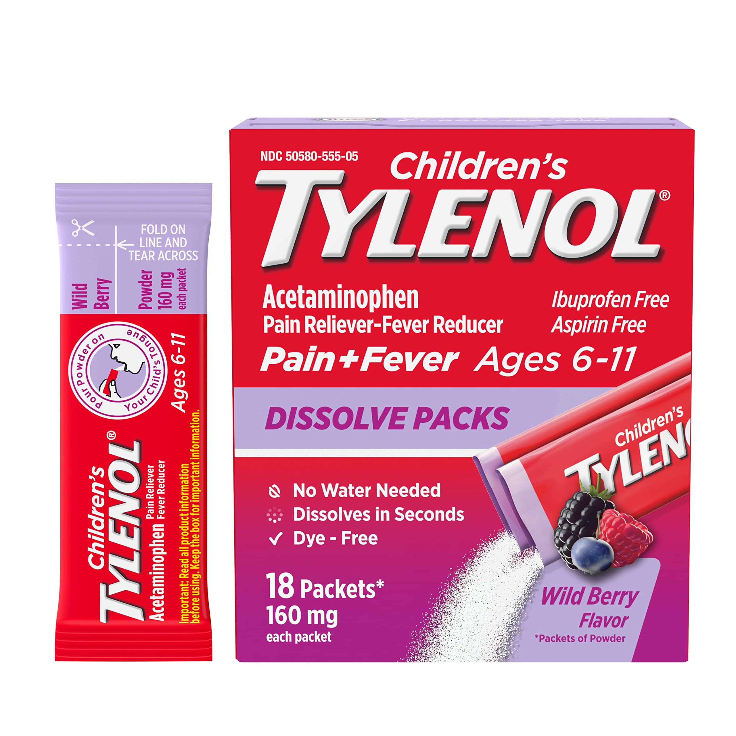Amazon Com Children S Tylenol Dissolve Powder Packets With 160 Mg Acetaminophen Wild Berry 18 Ct Health Household
